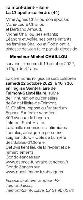 Décédé à Les Sables-d'Olonne (85340, France) le mercredi 19 octobre 2022 à l'âge de 87 ans