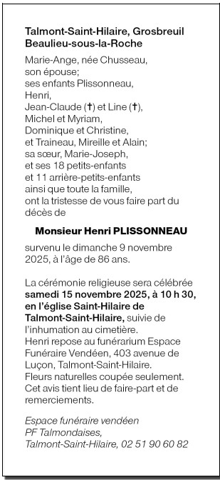 Décédé à Les Sables-d'Olonne (85340, France) le dimanche 9 novembre 2025 à l'âge de 86 ans