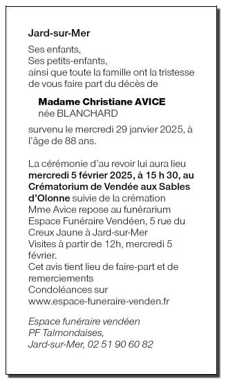 Veuve de Monsieur Marcel AVICE