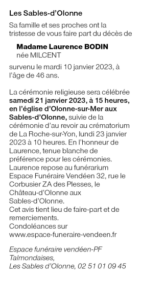 Madame Laurence BODIN née MILCENT