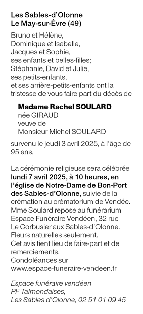 Veuve de Monsieur Michel SOULARD