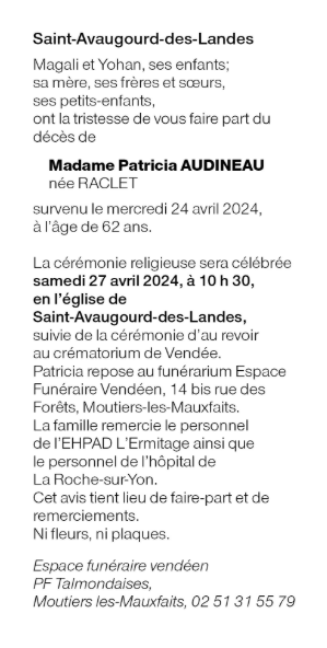 Madame Patricia AUDINEAU née RACLET