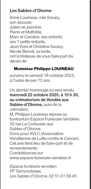 Décédé à Les Sables d'Olonne (85180, France) le samedi 18 octobre 2025 à l'âge de 71 ans