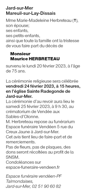 Décédé à Les Sables d'Olonne (85340, France) le lundi 20 février 2023 à l'âge de 75 ans