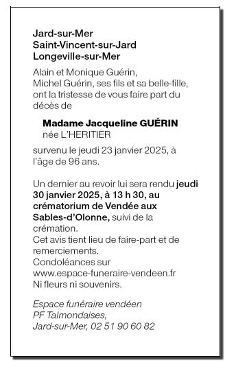 Madame Jacqueline GUÉRIN née L'HERITIER