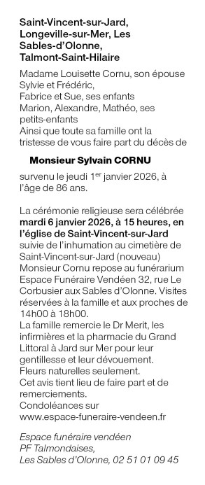 Décédé à Les Sables d'Olonne (85340, France) le jeudi 1 janvier 2026 à l'âge de 86 ans