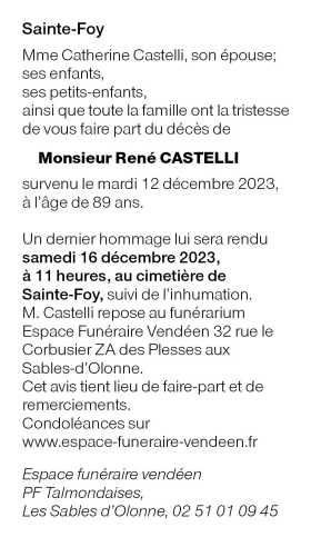 Décédé à Les Sables d'Olonne (85340, France) le mardi 12 décembre 2023 à l'âge de 89 ans