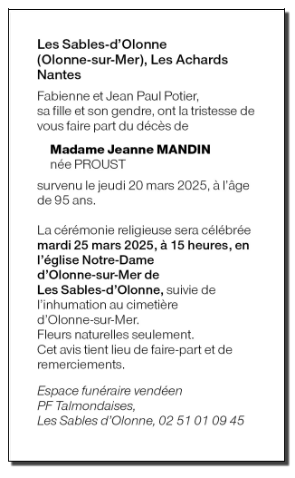 Madame Jeanne MANDIN née PROUST