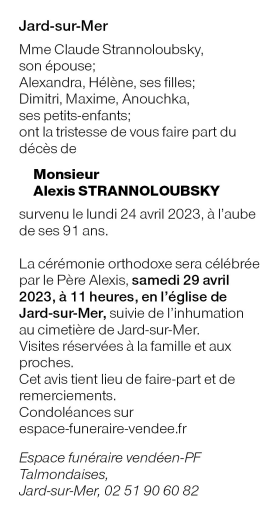Décédé à Les Sables d'Olonne (85100, France) le lundi 24 avril 2023 à l'âge de 90 ans