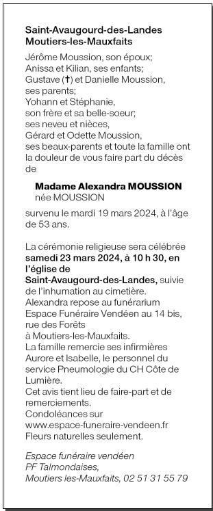 Epouse de Monsieur Jérôme MOUSSION