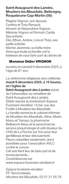 Décédé à La Roche-sur-Yon (85000, France) le samedi 6 décembre 2025 à l'âge de 67 ans